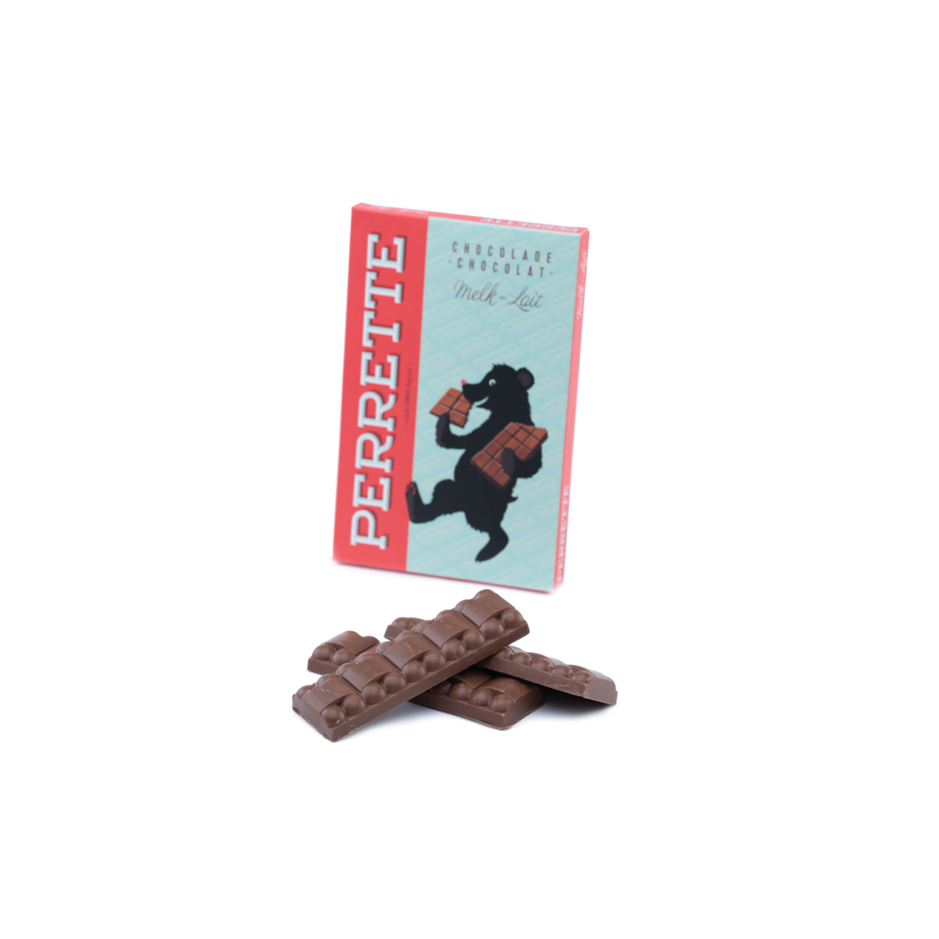 Een doosje vol nostalgie! Deze Perrette-reepjes in melkchocolade worden per 5 stuks verpakt in een doosje met vintage design.