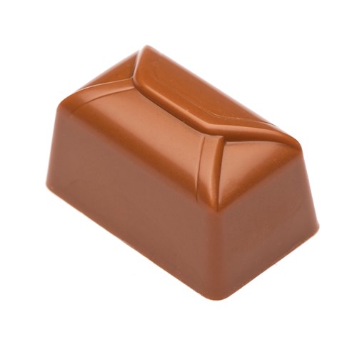 Een melkchocoladen "doosje" met daarin een heerlijk zachte caramelvulling.