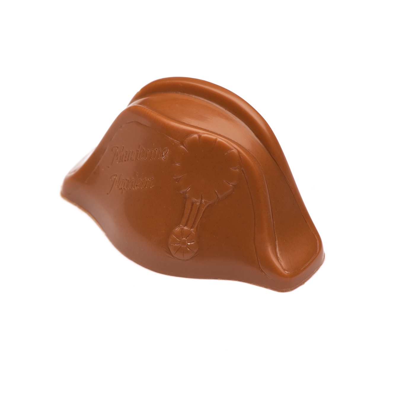 Napoleon's hoed in melkchocolade, gevuld met marsepein en Mandarine Napoléon.